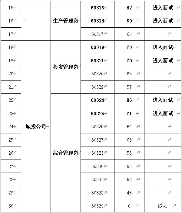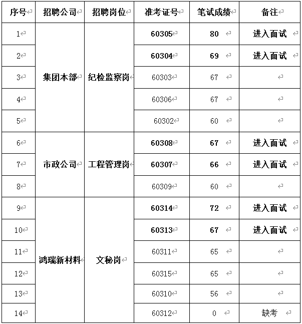 根据《黄山市徽城投资集团招聘员工考试公告》,笔试工作已于2019年12月15日上午结束,现将笔试成绩及进入面试人员名单公布如下: