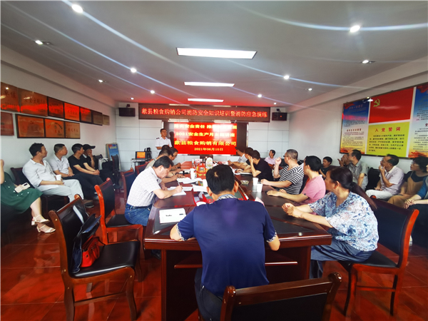 为建立有效防范处理火灾事故工作机制,进一步提高公司员工以及租赁单位的消防安全意识和应急救援能力。6月10日下午,粮购公司组织召开消防安全知识培训会议暨消防应急演练。会议邀请到黄山市政安消防培训中心消防教官进行现场授课。公司全体员工、国储库区内各租赁单位负责人及代表40余人参加。县发改委、集团安委办、国资运营公司有关领导到会指导。