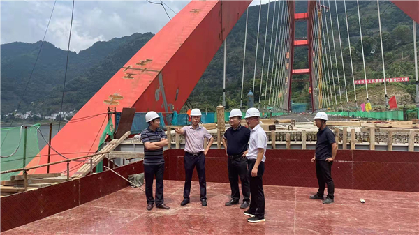 6月16日,县农发行行长凌飞会同城投公司总经理方杰一行赴新溪口乡实地查看新安江大桥项目建设进展情况,新安江大桥项目部经理张勇恩陪同调研。