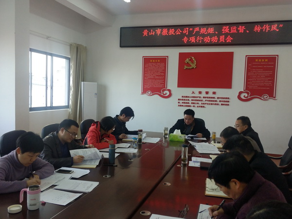 312日下午,黄山市徽投公司党委书记、董事长洪筱明主持召开了公司“严规矩、强监督、转作风”集中整治形式主义官僚主义专项行动部署会。公司党委班子成员及全体员工参加会议。