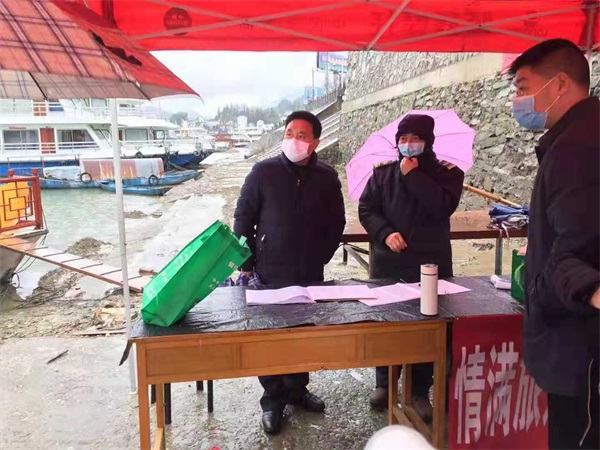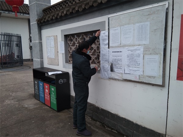 利用景区LED屏滚动播放防疫宣传标语,利用移动音响在深渡码头播放防控宣传音频,在景区各个点张贴疫情通告…将防控疫情宣传落到实处。