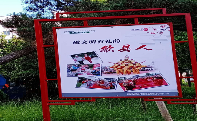 公司更换小区一批老旧公益广告,并增加其他内容公益广告的投放。宣传的内容包括社会主义核心价值观、讲文明树新风、创建全国文明城市、文明礼仪、使用公勺公筷等。
