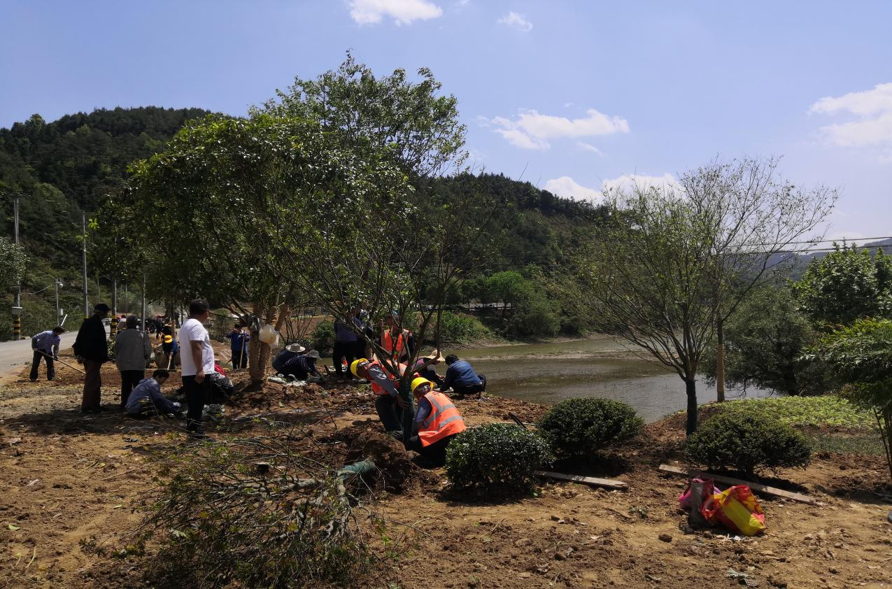 近日,在南源口五里牌节点施工现场,三十多位工人正抢抓晴好天气,严格按照绿化技术人员的指导,积极有序开展松土平整、修剪摘叶、挖穴栽植、覆土浇水等工作,所到之处均呈现一片热火朝天的劳动景象。