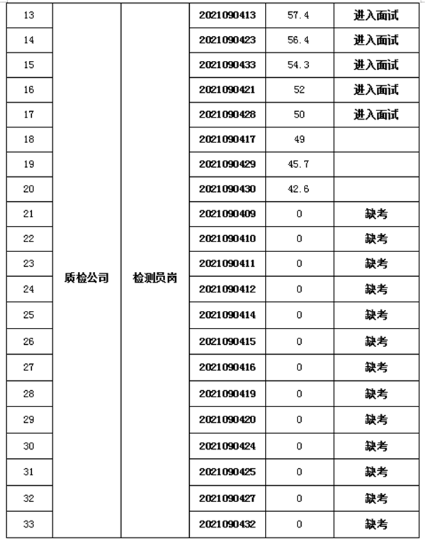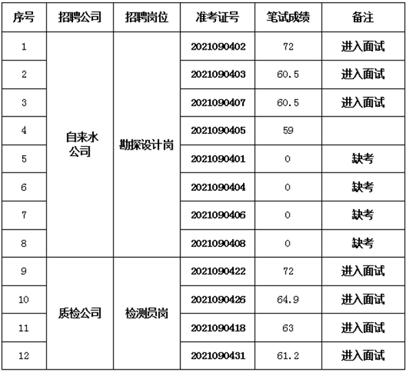 根据《开云网页版登录入口-开云online(中国) 招聘员工考试公告》,笔试工作已于2021年9月4日上午结束,现将笔试成绩及进入面试人员名单公布如下: