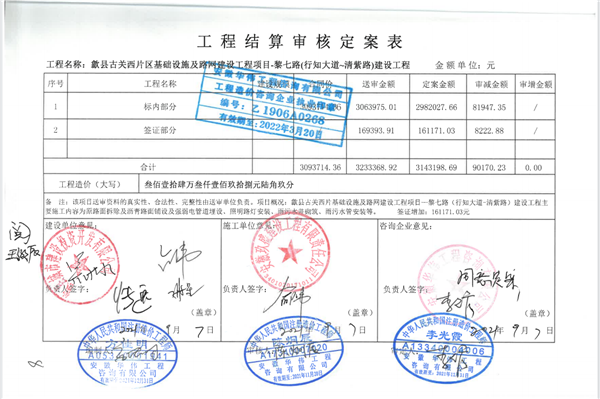 歙县古关西片区基础设施及路网建设工程项目黎七路(行知大道~清紫路)建设工程