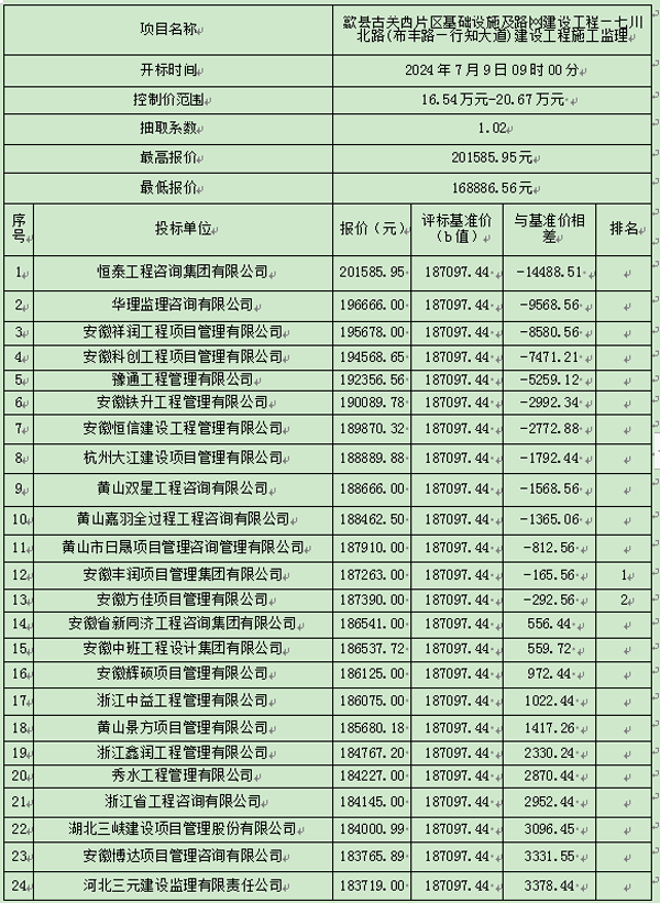 歙县古关西片区基础设施及路网建设工程—七川北路(布丰路—行知大道)建设工程施工监理比选公示